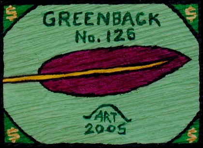 April. A drawing of the Purple Feather Greebacks will be with numbers 126 through ?. The Purple Feather Person featured will be PFP 18: