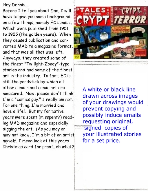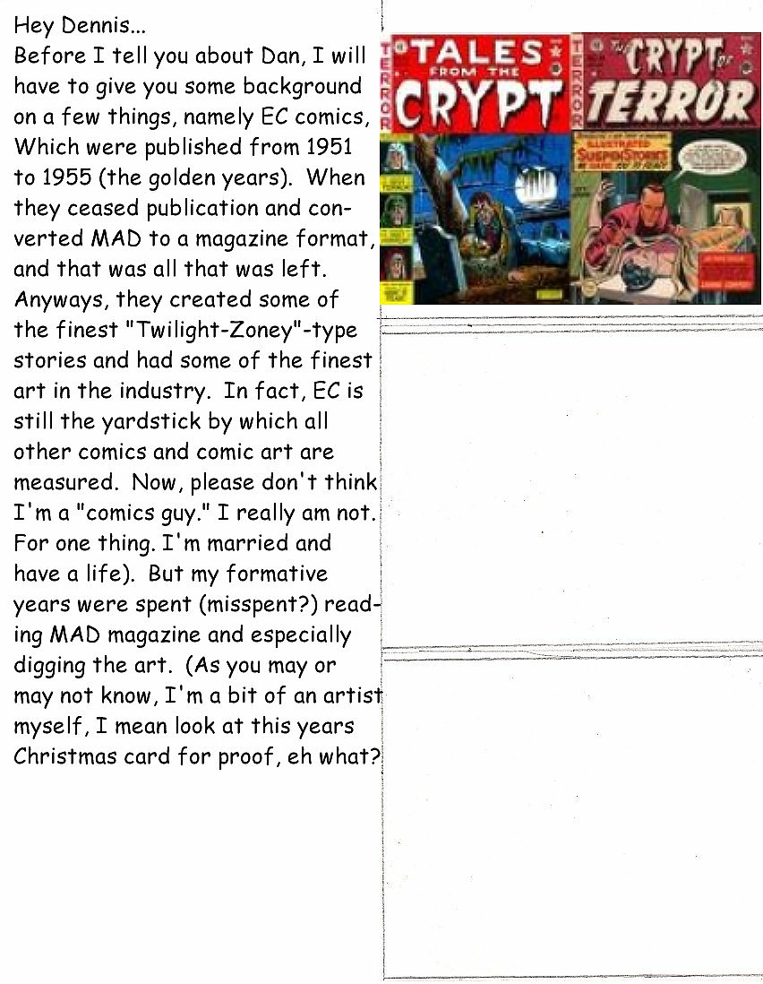 My idea for your "Letters to Dennis" would be to have drawings/photos on one side and the text on the other...doesn't have to be "stylish."