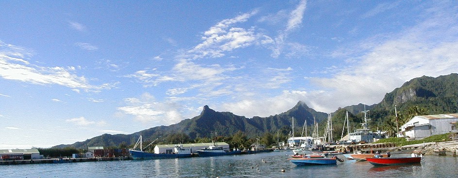 A stitched photo of Avatiu harbor.