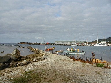 Avatiu, right next to Avarua's westside, is where the harbor ('harbour' here) is. Avarua has a harbor, too, but it isn't the main one. This certainly is not what one would call a busy harbor, but it is the busiest one in the whole country. The New Zealand Army Engineers keep the harbor open through the coral reef. These photos are from two different days.