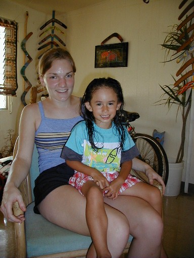 Lani came over to use the computer while here hair dried.