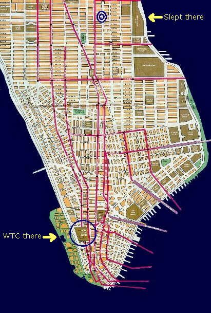 The following web pages are part of a larger safari that took a friend (a surfer, carpenter, martial arts instructor, former biology student of mine) and me to Atlanta and New York City at the end of December 1999. The web pages illustrate with images what we did that Christmas Morning 1999. From much experience in the past, I've learned the times to avoid crowds at "souldn't-be-missed" tourist attractions. Tony suggested that we could make the visit to the World Trade Center our Christmas present that day.